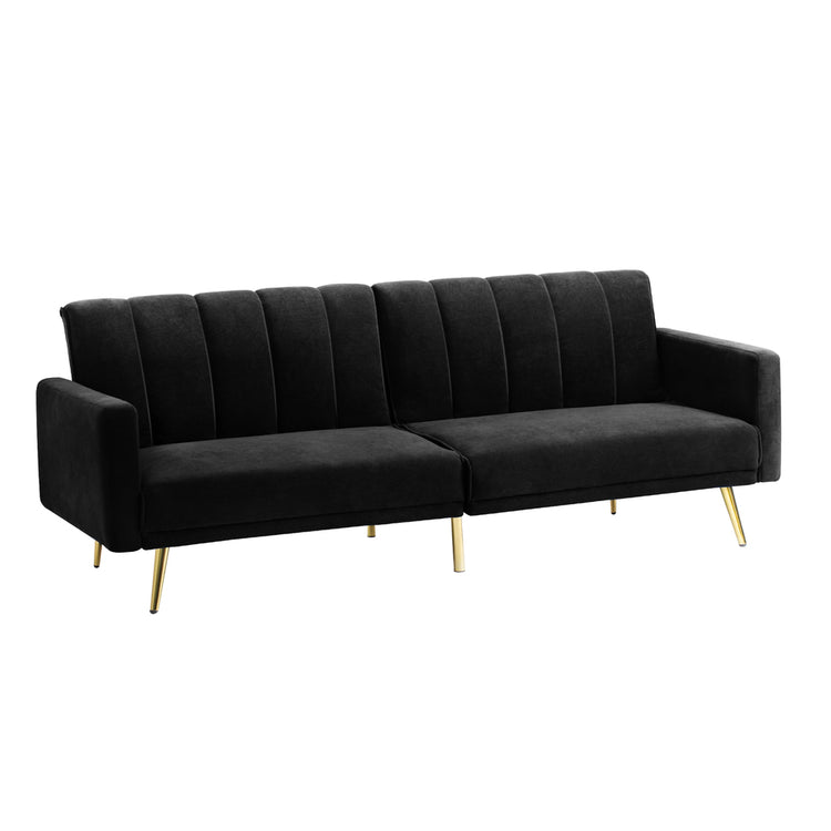 Velvet 3-Seater Sofa Bed Black